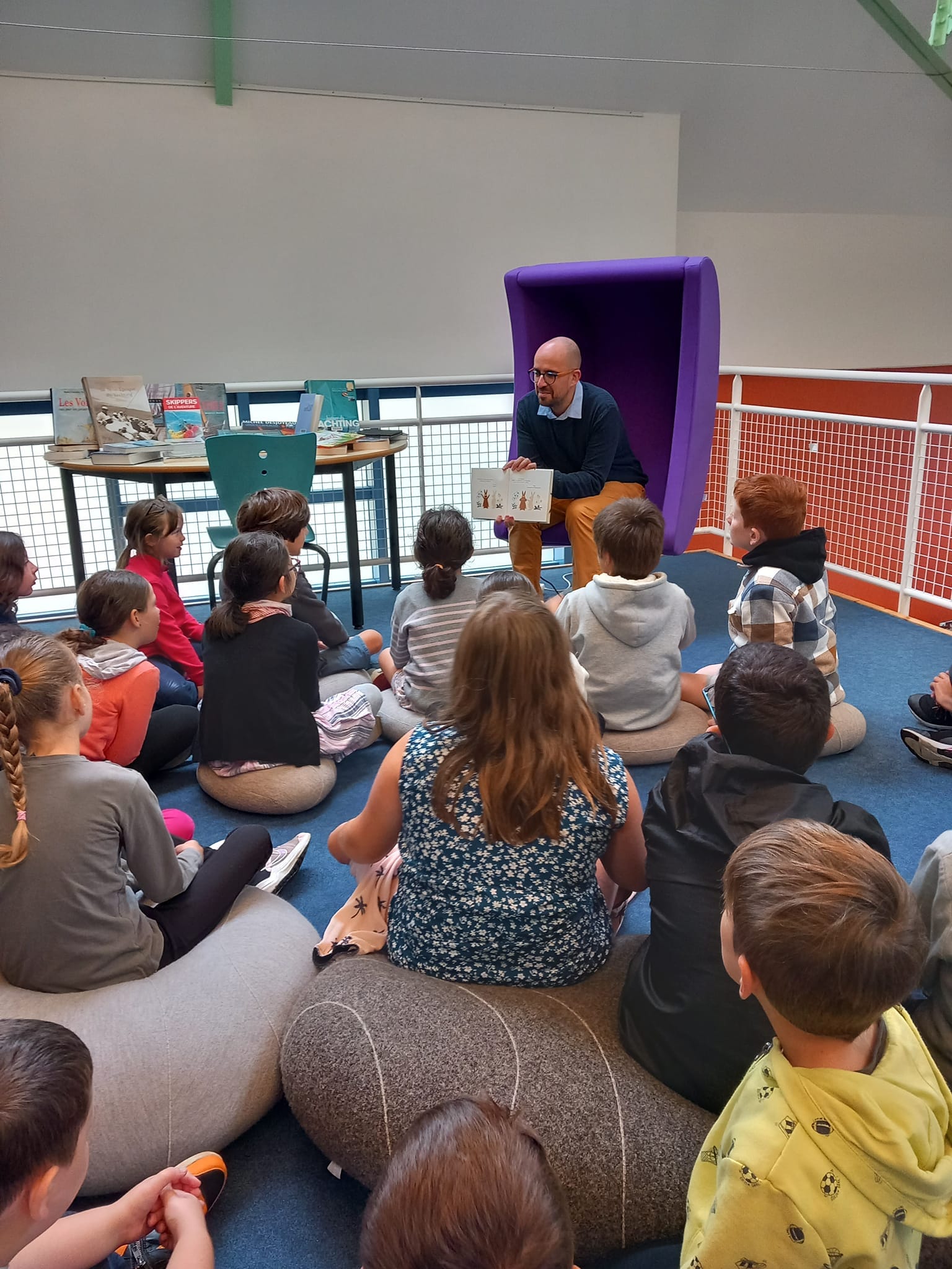 Chaque mois, les enfants se rendent à pied à la médiathèque de Loctudy pour y passer un moment convivial autour de la lecture, en compagnie d’Anthony qui veille toujours à lire une ou deux histoires au groupe. C’est aussi l’occasion pour chaque enfant de parcourir le fonds disponible et d’emprunter l’ouvrage de son choix.